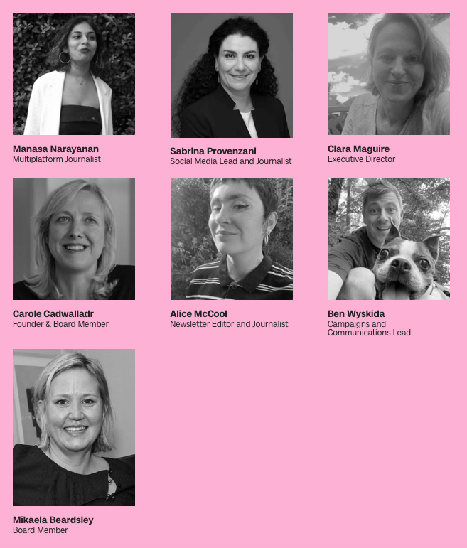 Founded in 2020 by Carole Cadwalladr, Orwell prize winning investigative journalist, the Citizens is a diverse collection of journalists, researchers and activists committed to curbing the unchecked power of states and technology corporations.