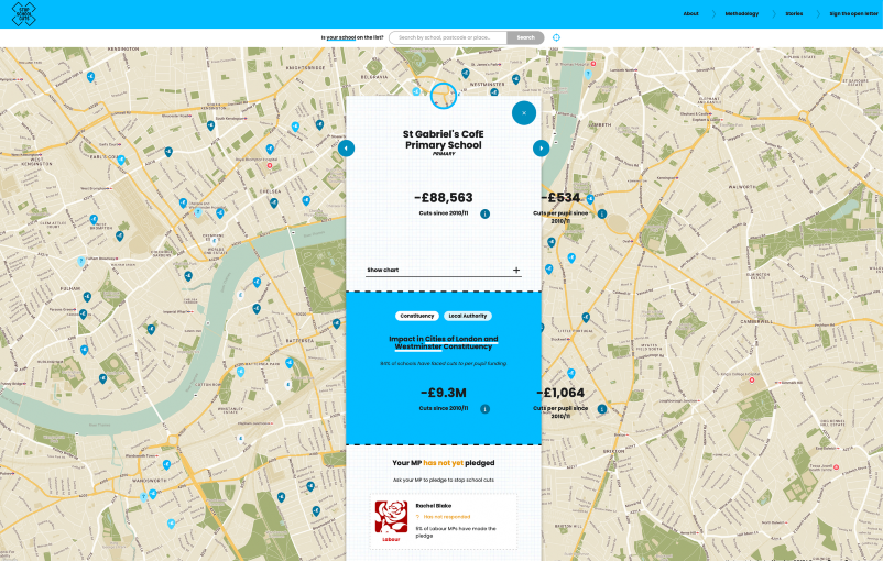 Built on an existent prototype project by UK cooperative Outlandish, the union wanted to raise awareness on how defunding schools in relatively well funded areas to give to less funded ones was not an effective policy. The NEU believed that the government should inject more into underfunded schools and wanted to highlight the overall funding cuts since 2010. So right before elections, Outlandish and another cooperative, The Small Axe, got to work.