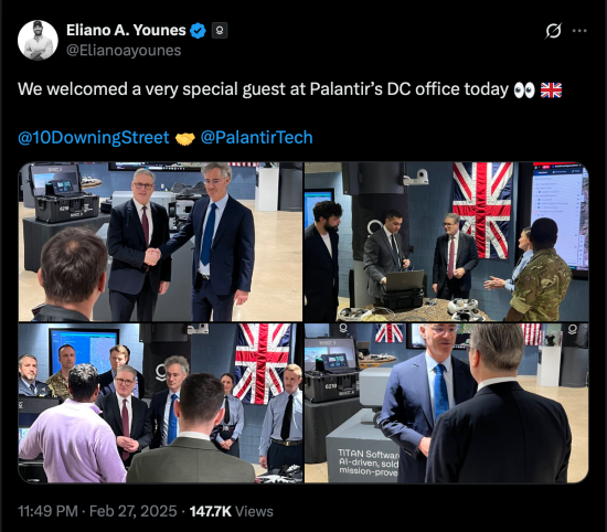 Strikingly, the other pit stop Starmer made was to Palantir’s offices, a major technology company, where he met with its CEO Alex Karp, a move that underscored just how central US technology firms already were to his government’s agenda.